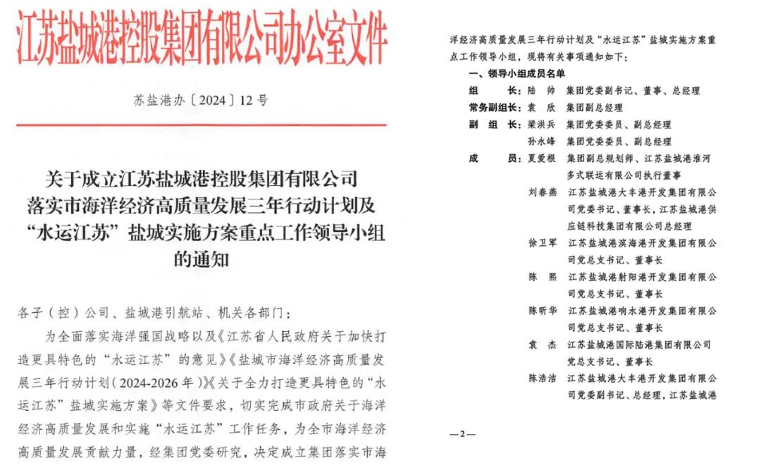 2月3日,集团发布了《关于成立海角社区 落实市海洋经济高质量发展三年行动计划及“水运江苏”盐城实施方案重点工作领导小组的通知》,领导小组下设一办两组,明确各项工作责任单位和责任人。3月2日,工作领导小组召开第一次调度会议,对各项工作进行了系统部署,深入推进海洋经济高质量发展和水运江苏重点工作。