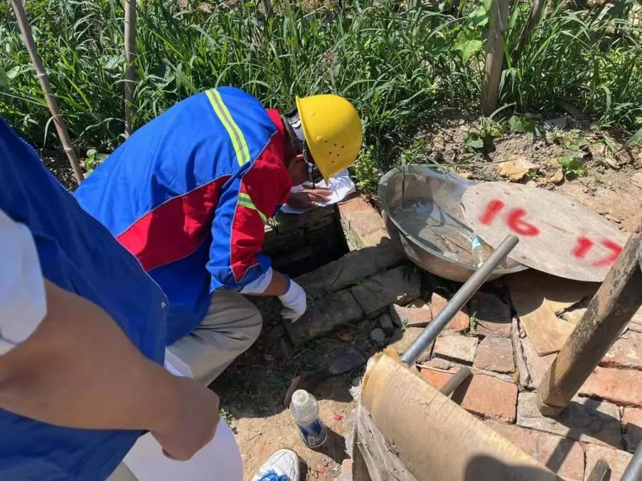 (表井内有水,为清楚抄表,抄表员正在抽水中)