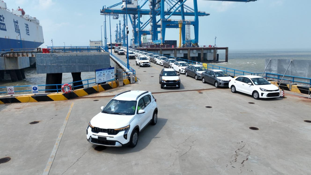 7月21日,在盐城港大丰港区滚装码头,2821辆悦达起亚商品车正热火朝天地进行滚装作业,将开启盐城港自有滚装船“和顺号”首次韩国光阳港之旅。据悉,本月盐城港大丰港区将连续出运悦达起亚汽车两批次,共7221台。今年以来已累计出口商品车14600台,持续以稳定高效的商品车物流通道助力汽车产业高质量发展。