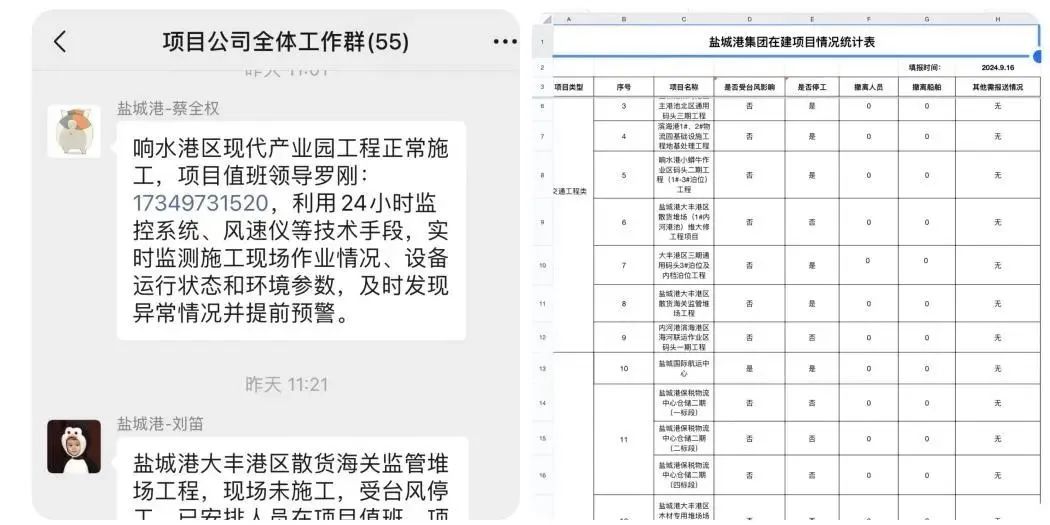 公司密切关注台风预警信号、趋势变化、实况降雨量等信息变化,通过工作微信群及电话短信等方式,及时发布预警警报。同时,严格执行领导干部带班、关键岗位24小时值班制度和事故信息报送制度,值班人员坚守工作岗位,时刻保持通信联络的畅通无阻,车辆交通工具、抢险救灾设备处于随时可用的良好状态。项目负责人全面掌握并部署项目的安全生产工作,确保无死角、无遗漏,一旦发生险情、事故或其他突发事件,立即启动应急响应机制,采取科学有效的处置措施,并按规定及时上报信息。