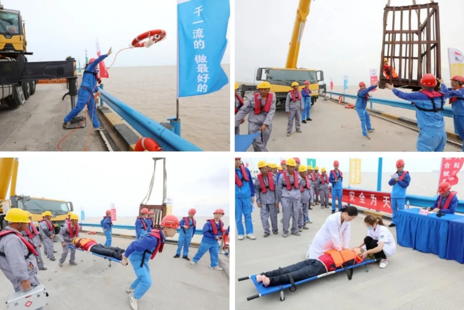 为贯彻落实习近平总书记关于防灾减灾重要指示精神,全面提升防范自然灾害能力,确保极端天气条件下高效化解危机,近日,港湾建设集团在大丰港区一期码头引桥加固项目现场组织开展防灾减灾实战化演练。