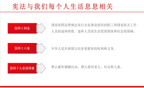 一处知识宣传角,让宪法入脑入心。“什么是宪法?”“宪法的作用有哪些?”“国家宪法日的意义是什么?”一幅幅生动的宪法知识挂图点缀着射阳港区办公楼,他们驻足品鉴,深入了解宪法对公民权利义务的相关规定,自觉维护宪法和法律权威,激发内生法治动力,发挥尊宪尚法“头雁效应”,提升员工法治素养。