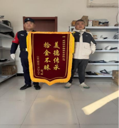 近日,市民顾先生将一面写有“美德传承、拾金不昧”的锦旗送到盐城港大丰港区港航服务中心西门岗,以感谢盐城港保安公司徐成东拾金不昧的善举。