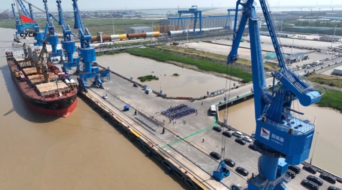 创新赋能。整合多方资源为大丰港区三期通用码头3号泊位量身打造了“智能积木拼装师”——全球首创装配式码头一体化绿色智能筑港机。首创了桩顶支撑装置、自行走机构、多功能吊装系统,在安装下放过程中,通过系统精准掌控构件姿态并自动调位。节约了总工期1个月,减少人工费约35万元,施工效率和安装精度大幅提升,现场作业人员和设备投入大大减少,实现施工全过程绿色智能化。