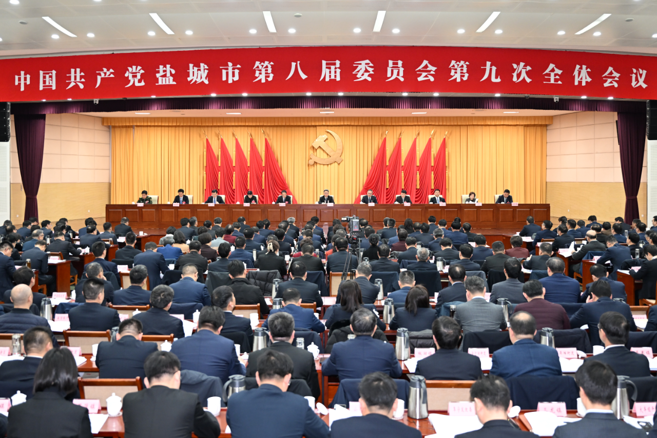 12月29日,中国共产党盐城市第八届委员会第九次全体会议举行。全会坚持以习近平新时代中国特色社会主义思想为指导,深入贯彻落实党的二十届三中全会、中央经济工作会议和省委十四届八次全会、省委经济工作会议精神,总结今年工作,部署明年任务,动员全市上下进一步全面深化改革开放,坚定不移推动绿色低碳发展,高质量完成“十四五”规划目标任务,奋力把中国式现代化盐城新实践不断推向前进。