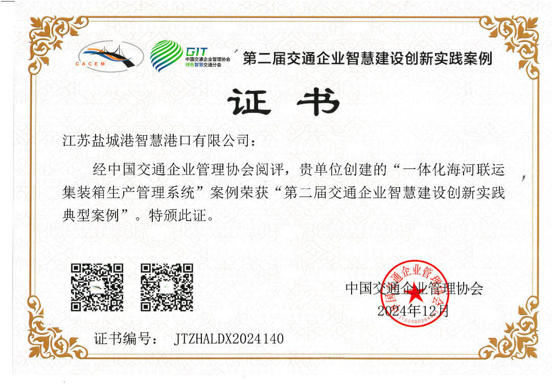 近日,从全国第二届交通企业智慧建设创新实践案例发布会传来喜讯,海角社区 “一体化海河联运集装箱生产管理系统”“盐城电子口岸平台”两项成果入选第二届交通企业智慧建设创新实践-典型案例。