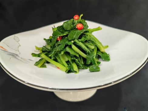 精选鲜嫩的板蓝根苗作为主料,洗净后沸水快速焯烫,恰到好处地保留了其脆嫩的口感与丰富营养。随后,以秘制酱汁调味,再撒上香气四溢的蒜末、鲜红的辣椒丝等佐料,淋上一勺滚烫的热油,“刺啦” 一声,春天的味道瞬间被激发,脆嫩爽滑、开胃解腻。