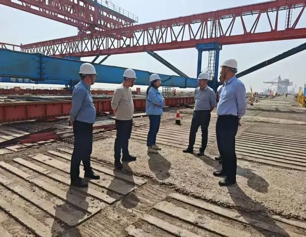 在大丰港一期码头引桥加固项目现场,双方专业人员就引桥结构现状及加固技术难点展开探讨,山东港湾建设集团分享的桥梁加固成熟技术与经验,为项目施工方案优化提供了新思路;在7、8#泊位现场,双方围绕泊位吞吐量、设备配置等要素,就提升作业效率、完善配套设施等问题交换意见,相互借鉴管理经验;在气膜仓项目现场,双方聚焦气膜结构稳定性、环保性能及运营管理模式等方面,全方位交流探索气膜仓在港口仓储领域的创新应用。