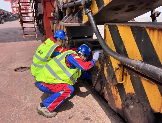 全面开展防腐涂漆工作,大力组织班组人员深入排查起重设备吊具、吊钩、钢丝绳锈蚀情况,分批次进行深度清洁,细致打磨,去除油污杂质,润滑刷漆上色,清理油漆褪色、掉皮、鼓包,开展二次补漆工作,为设备穿上“新衣”,进一步提升设备使用寿命,让港容港貌焕发“新颜值”。