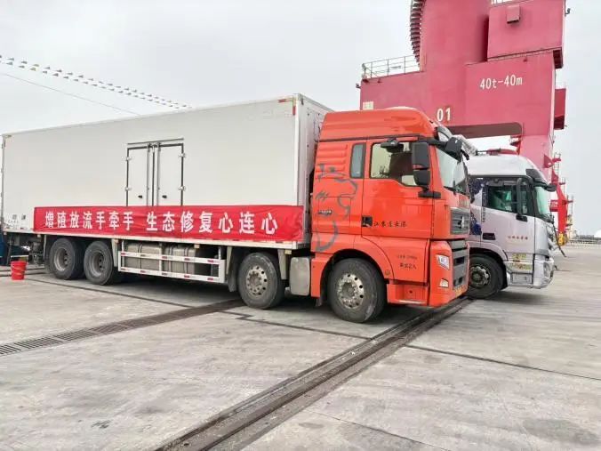 活动当天,射阳港区3.5万吨级码头现场秩序井然,射阳港区志愿者、农业农村局工作人员、技术专家及公证处人员共同参与放流。工作人员严格遵循操作规程,对蟹苗开展质量检验、计数及装运工作。放流前,技术人员对苗种进行严格检验检疫,确保无病虫害、无药物残留,为蟹苗健康成长提供基础保障。当鲜活的蟹苗被缓缓放入海中,“小家伙们”迅速游向深海,现场响起阵阵掌声。