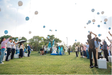 户外婚礼秀的“集体问誓”环节,由全体来宾共同见证新人的誓言。这一创新形式不仅增强了互动性,还让参与者深刻感受到港泊文旅品牌的温度与诚意。最后尾声的气球放飞仪式,更以仪式感诠释着 “爱如潮汐永恒” 的品牌主张。