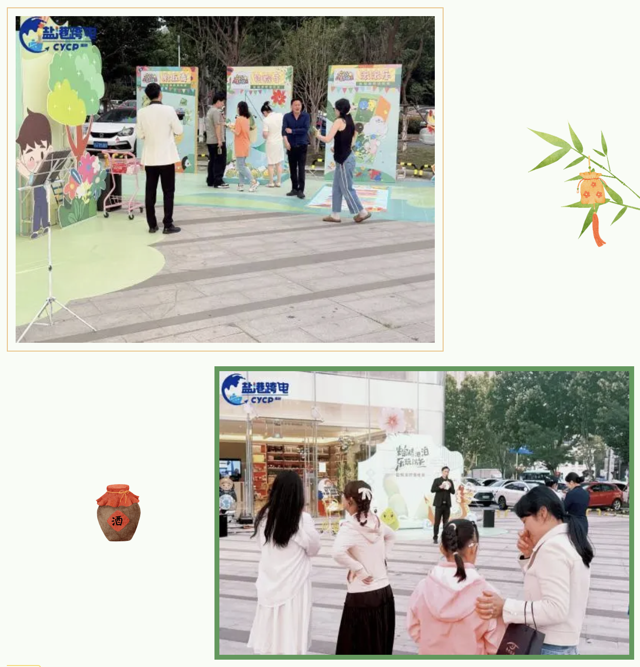 在盐城宝龙店与射阳趣伏里店的显著区域,特别设置的端午节主题互动区,成为了节日期间的欢乐焦点。活动期间,顾客参与了一系列精心设计的传统趣味游戏。“射五毒挑战”、“滚瓶子赢好礼”等环节通过精准投掷纳福,滚动特制瓶子,让顾客亲身体验传统端午节的富有童趣的习俗魅力并赢取了包括品牌试用装、零食饮料以及端午特色小礼品在内的丰厚奖品。