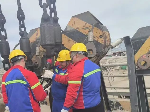 安全,是港口生产永远不可逾越的红线,设备安全更是重中之重。生产保障组24小时坚守岗位,时刻守护着港口设备的安全运行。他们依据门机使用频率、作业环境及磨损数据等详细信息,“量体裁衣”地为每一台设备制定保养方案。为关键部位充分润滑,确保“钢铁巨人”能够运转流畅;钢丝绳等重点部件接受“点检员”细致入微的检查,不放过一丝隐患裂痕,为安全生产筑起坚实的“防护墙”。