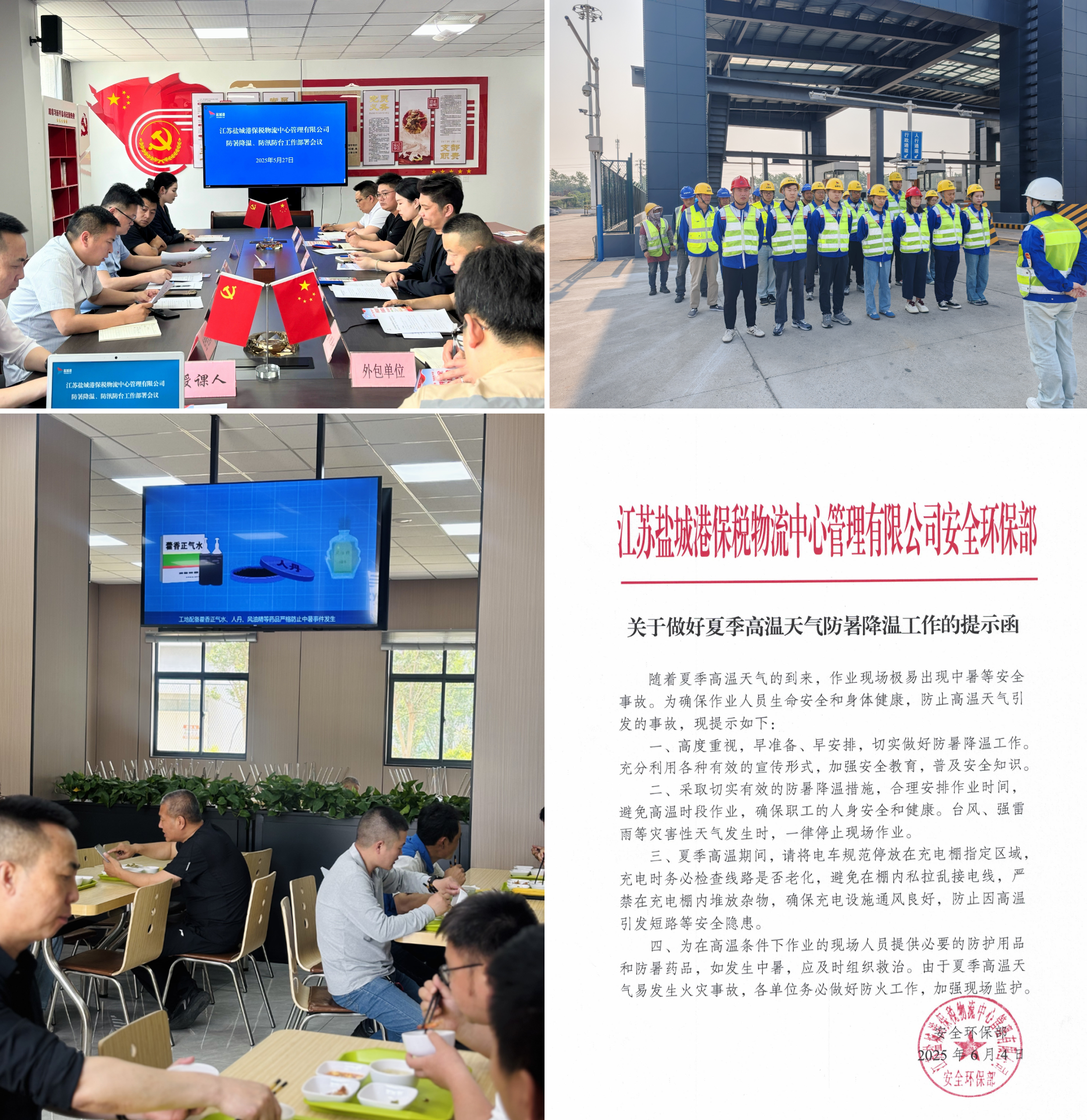 下一步,盐城港保税物流中心将以“时时放心不下”的责任心和“事事心中有底”的行动力,持续做好高温季节防暑降温工作,进一步加大隐患排查整治力度,抓紧抓实安全防范各项工作,为公司全年安全生产提供坚实保障。