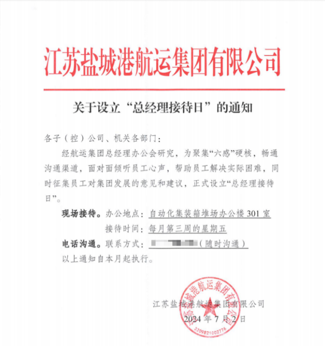 为进一步聚焦“六感”硬核,畅通沟通渠道,面对面倾听员工心声,帮助解决实际困难,同时征集对集团高质量发展的意见和建议。航运集团常态化开展“总经理接待日”活动,在领导和职工间搭建起了一条发现问题、沟通问题、解决问题的桥梁。通过召开会议专题研究接访问题,协调相关部门及时解决,并要求将处理结果限时反馈给职工,形成“及时了解、及时解决、及时反馈”的闭环工作机制,真正将关爱关心员工落在实处,不断增强公司凝聚力和向心力。