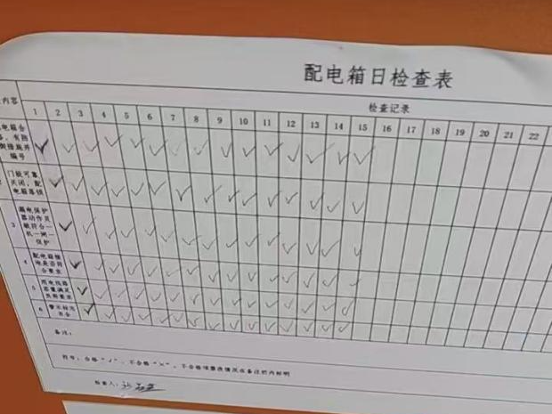 每日对配电箱进行实际检查(如箱体是否破损、箱门是否关闭严密、线路是否老化),及时更新检查记录,确保检查记录与实际情况一致。