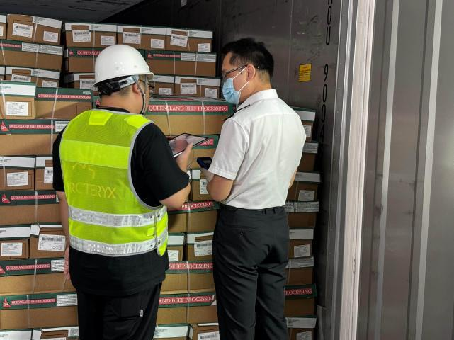 保税物流中心与速味达公司联合构建了“原产地直采—全程冷链—保税仓储”的一体化供应链模式,充分运用区内先进智能温控设备,对温度进行精准调控,且温度稳定性极高,波动幅度控制在极小范围内,确保牛肉从入库到存储全程保持新鲜状态,最大程度保留其优良品质。同时为助力澳洲牛肉快速入区,中心充分发挥自身在报关、报检等环节的资源整合能力,为该批货物开通了专属“便捷通道”。通过与海关部门的高效联动,内部流程的优化升级,大幅缩短货物从到港到入库的时间,实现澳洲牛肉的快速流转。