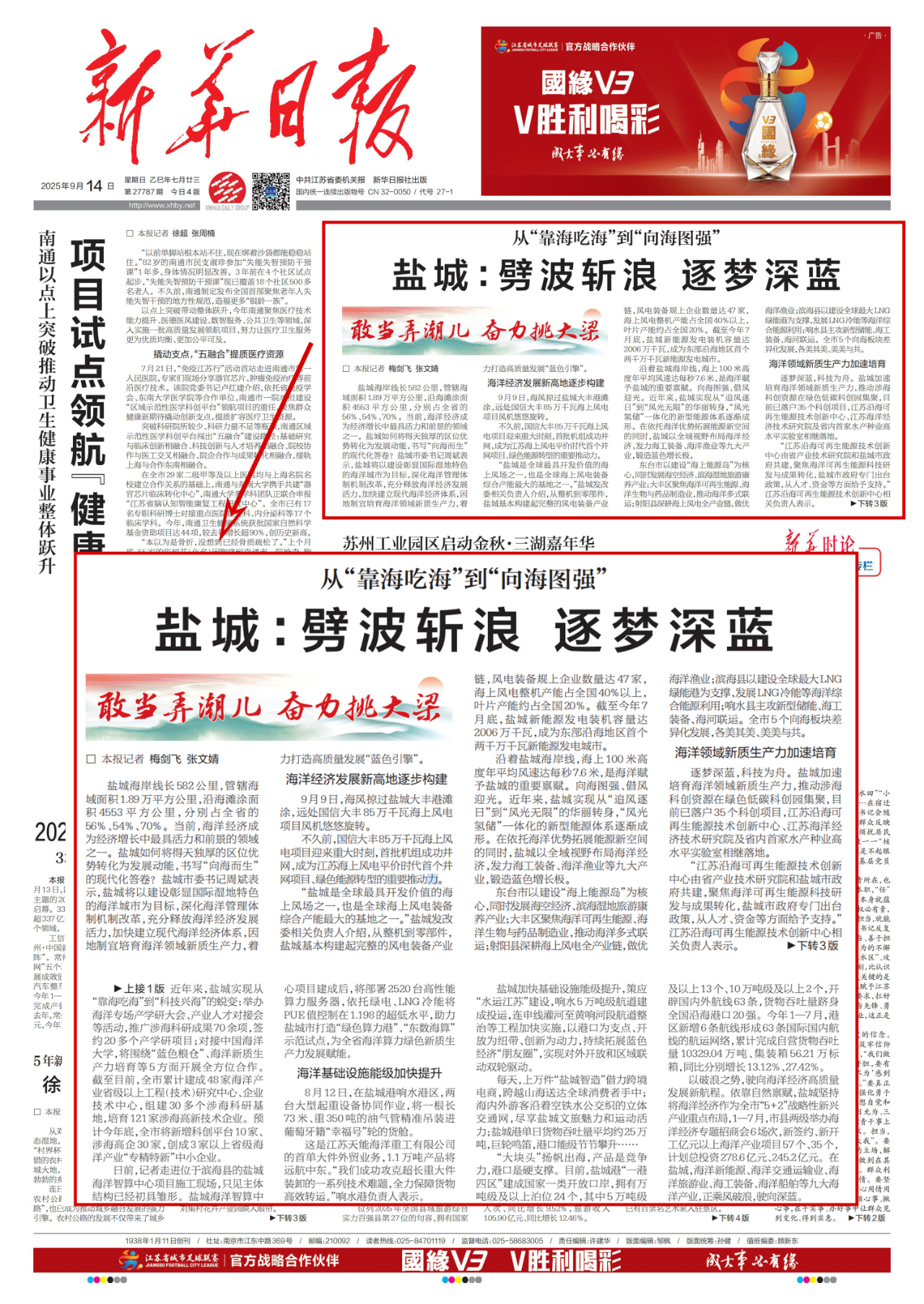 《新华日报》头版聚焦盐城