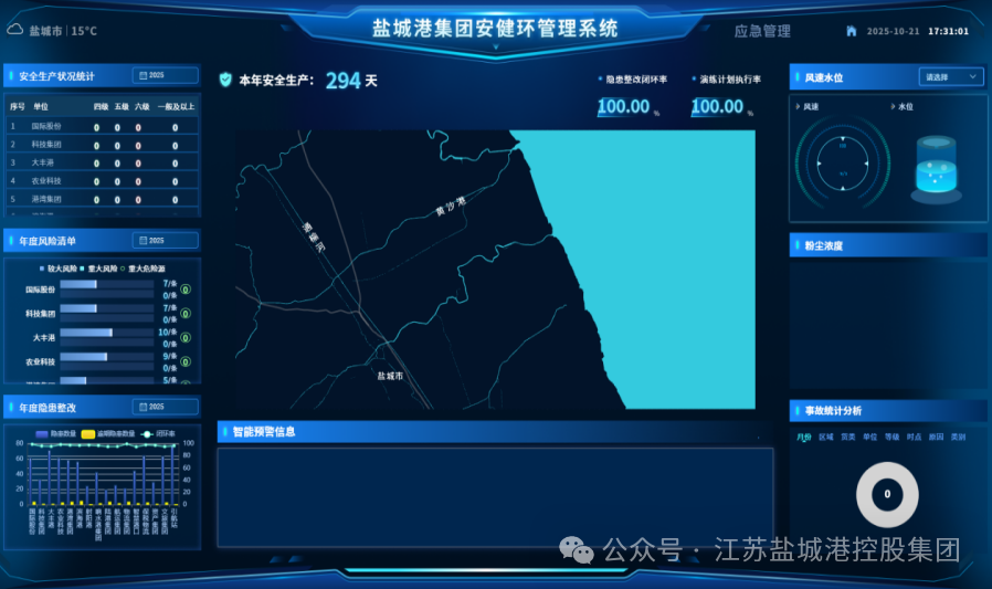 全力推进安健环管理系统落地,系统涵盖安全管理、危货管理、生态环境、职业健康等16大模块,集成风险分级管控、隐患排查治理、智能监控等核心功能,当前已完成功能开发与测试,年内投入运营使用,最终实现安全环保工作数字化管理,打造“港口安全生产一张图”。同时,完成电子口岸平台网络安全等级保护(二级)测评,为数据安全筑牢防护墙。