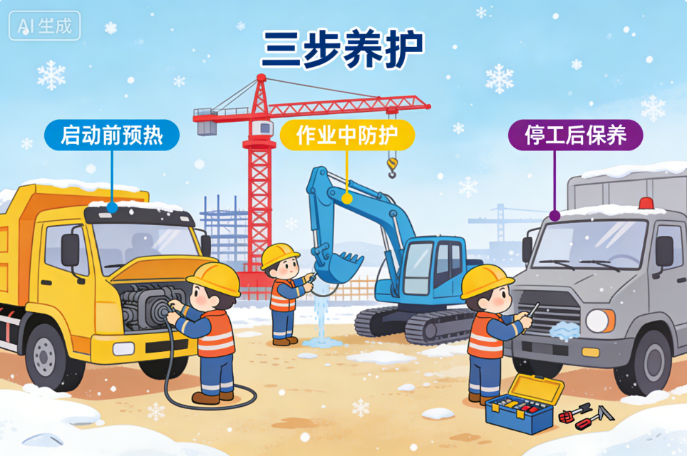 机械设备在低温环境下易出现“罢工”现象,需做好“三步养护”: