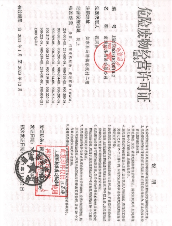 本公司在污染物处理工作中贯彻“安全第一、预防为主”的方针,严格实行标准化管理和作业,做到规范操作、安全操作。