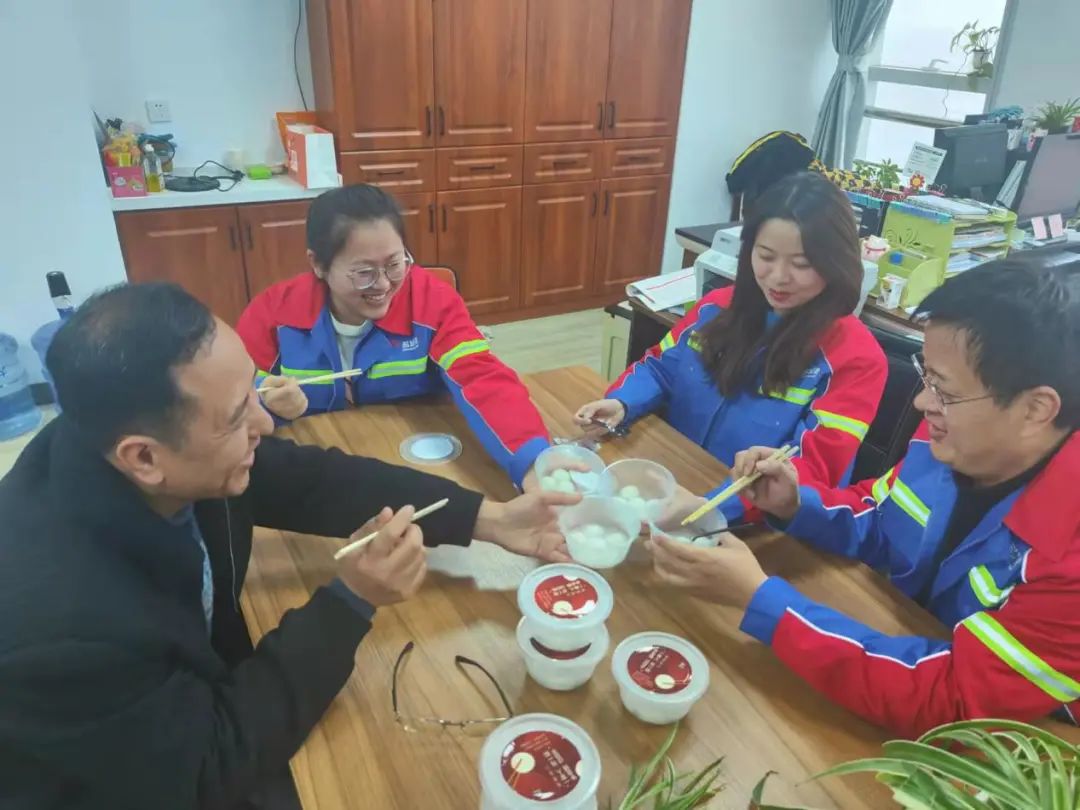 随后,大家分工协作、紧密配合,将一颗颗亲手制作的甜美汤圆盛在碗里,各公司主要领导将精心包装好的汤圆送到生产一线和外贸劳务专班隔离点每一位员工手上,向他们致以节日的祝福和慰问,并鼓励他们大力弘扬劳动精神和工匠精神,为公司发展贡献更大智慧和力量。