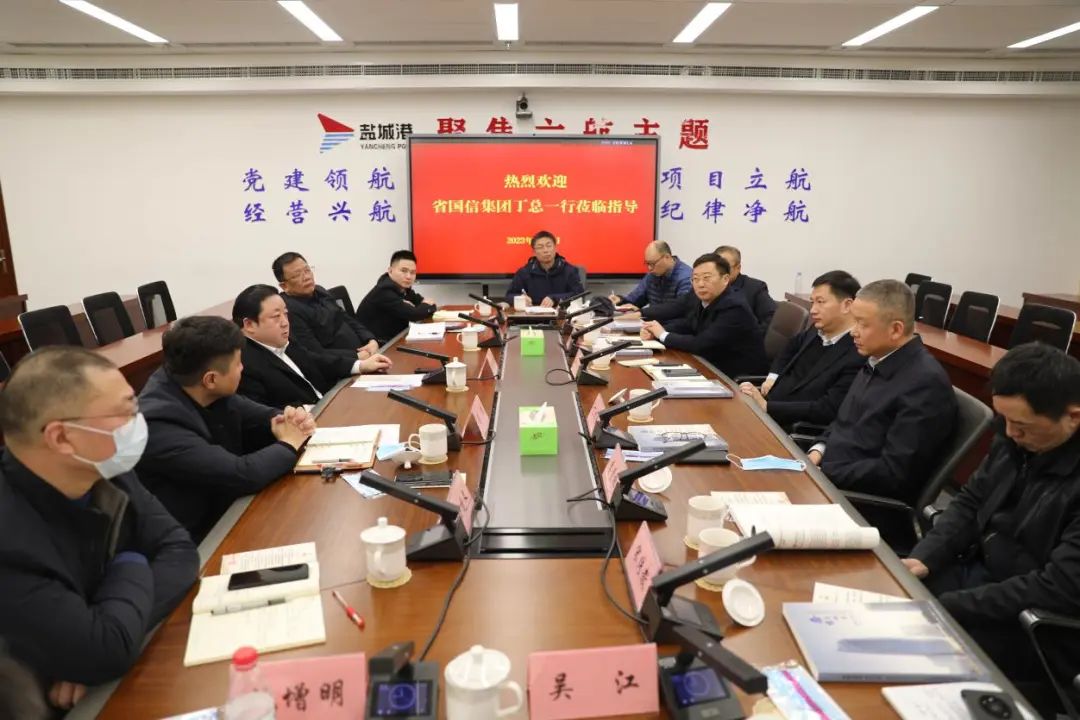 周正雄对丁旭春一行的到访表示欢迎,并对国信集团在海角社区 发展过程中给予的关心和支持表示感谢,并介绍了盐城港相关情况。他说,2020年,市委、市政府审时度势,将全市海港和内河港区融为一体,按照规划、投资、建设、管理、运营一体化要求,实现了海河联运一体化发展格局,为全市港航事业更优质、更高质量发展奠定坚实基础。集团成立以来,紧抓发展机遇,于2021年首次跻身全国亿吨大港行列,2022年货物吞吐量增幅及集装箱量增幅分别位列全国54个沿海港口的第一和第二位,进一步打响了盐城港的名气和品牌。与此同时,集团紧抓江苏沿海发展等契机,聚焦“十四五”末达到2亿吨吞吐量和1.5亿吨能级的目标,按照不搞“三无一不”投资的要求,持续在港口、航道、堆场、仓储等领域加大投资,系统性推进实施港口基础设施建设,为集团实现高质量发展夯实基础。省国信集团作为江苏省内大型国有企业,在项目投资和建设方面具有较强的优势,希望双方充分发挥各自资源优势,进一步强化沟通协作,形成工作合力,加快推进各项目前期手续办理,推动盐城港射阳港区5万吨级航道和5万吨级码头等项目落地实施,确保项目尽快开工,早日投产达效。