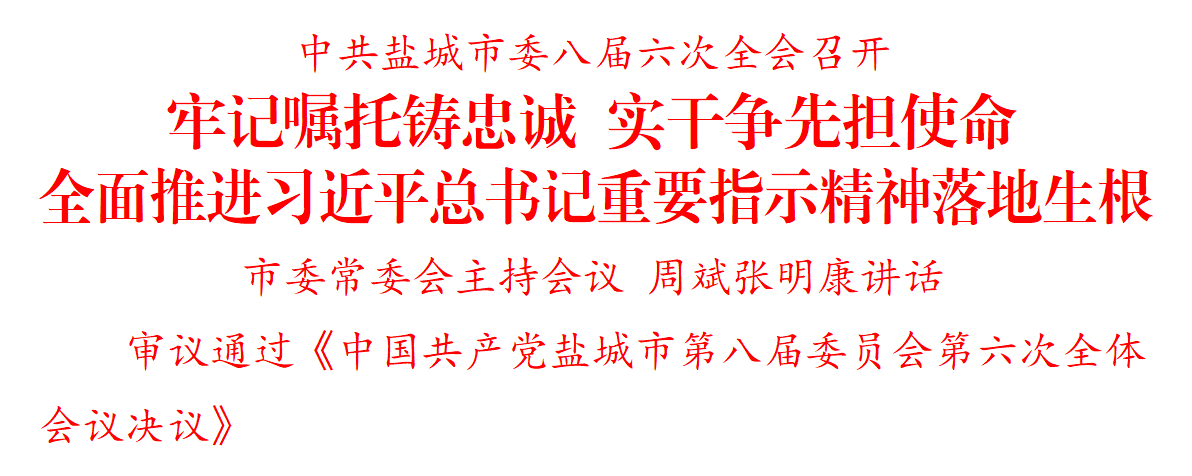 全会审议通过《中国共产党盐城市第八届委员会第六次全体会议决议》,讨论了《中共盐城市委常委会2023年度工作情况报告》《中共盐城市委常委会2023年度落实全面从严治党主体责任情况报告》。