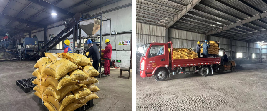 循环农业厂区固肥车间内,生产线的工人师傅加班加点赶订单、抓生产,确保春耕化肥供应,伴随着生产车间机器的轰鸣声,一袋袋包装好的化肥整齐码放在厂房里。随着春耕时节的到来,现在月出货量都在50吨左右,叉车来回穿梭,装卸工人们一刻不停将肥料装上发往各乡镇的货车,现场一派繁忙却又井然有序的生产景象。