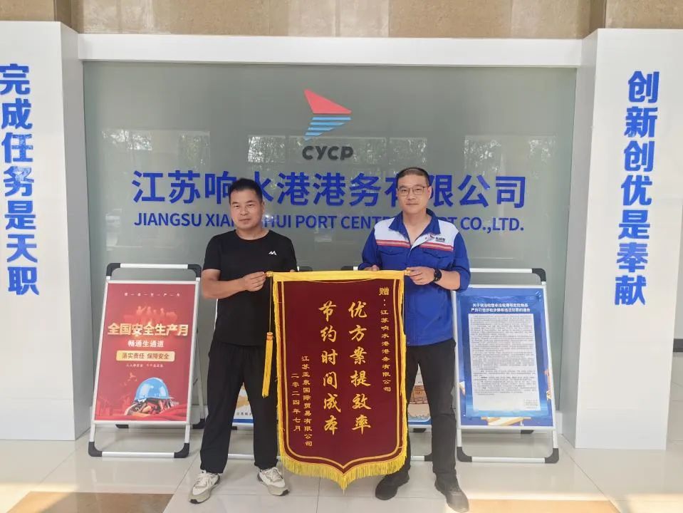 在各类机械未到达现场之时,“作战队伍”利用简易工具,徒手搬运沉重镍铁,与时间赛跑。直至深夜挖机抵达,作业效率开始显著提升,合力完成此次灌装任务。“团队面前无困难”,经过连续奋战,顾海伟团队于次日晚10时,提前6小时圆满完成了1190个吨袋的灌装工作,整个作业过程质量高、效率快、服务优,获得客户高度点赞和认可。客户送来“优方案 提效率 节约时间成本”字样锦旗,表达港区为客户解决燃眉之急的感激之情,同时赞誉响水港员面对困难不退缩、勇于担当的职业风貌。