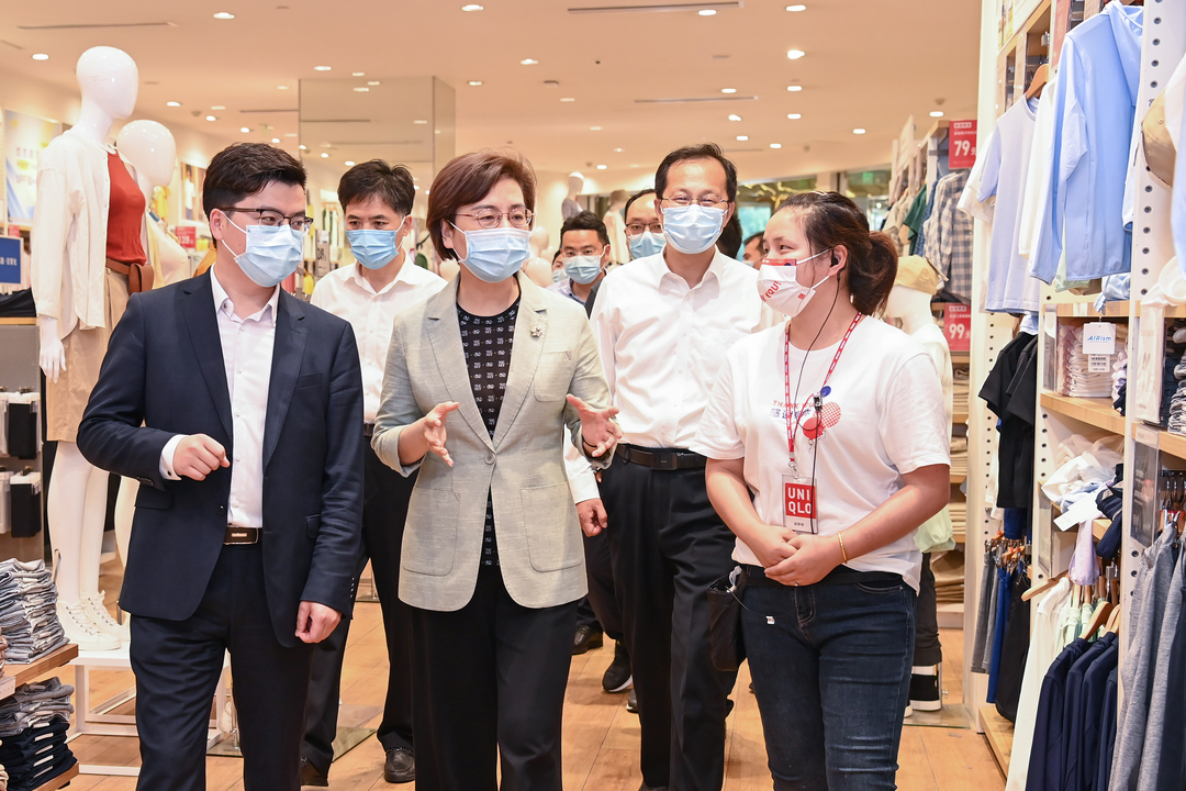 5月28日下午,市委书记徐缨到盐南高新区和盐都区调研服务业复工复市情况。她强调,要深入学习贯彻习近平总书记重要指示精神,认真落实全国稳住经济大盘电视电话会议部署和省委常委会最新要求,高效统筹疫情防控和经济社会发展,坚定信心多措并举促进消费全面复苏,加快落实纾困惠企政策,充分发挥服务业稳增长保就业的支撑作用,只争朝夕推动复工复产、复商复市,最大限度减少疫情带来的不利影响,真正把“疫情要防住、经济要稳住、发展要安全”重大要求落细落实落到位,为完成全年目标任务打下坚实基础。