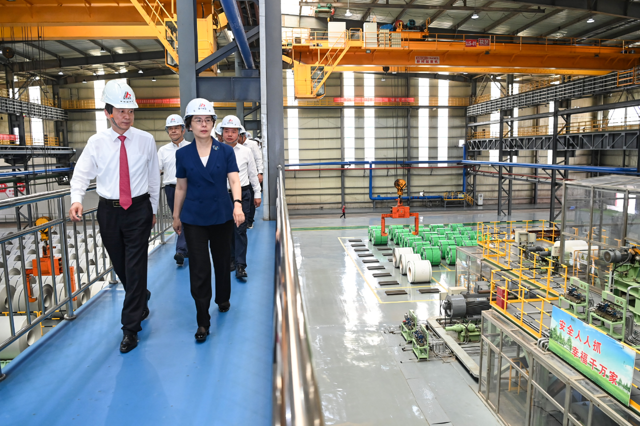 在高卡轻合金项目车间,徐缨详细了解工艺装备、核心技术和产品性能,鼓励企业抢占更广市场,尽快实现达产满产。