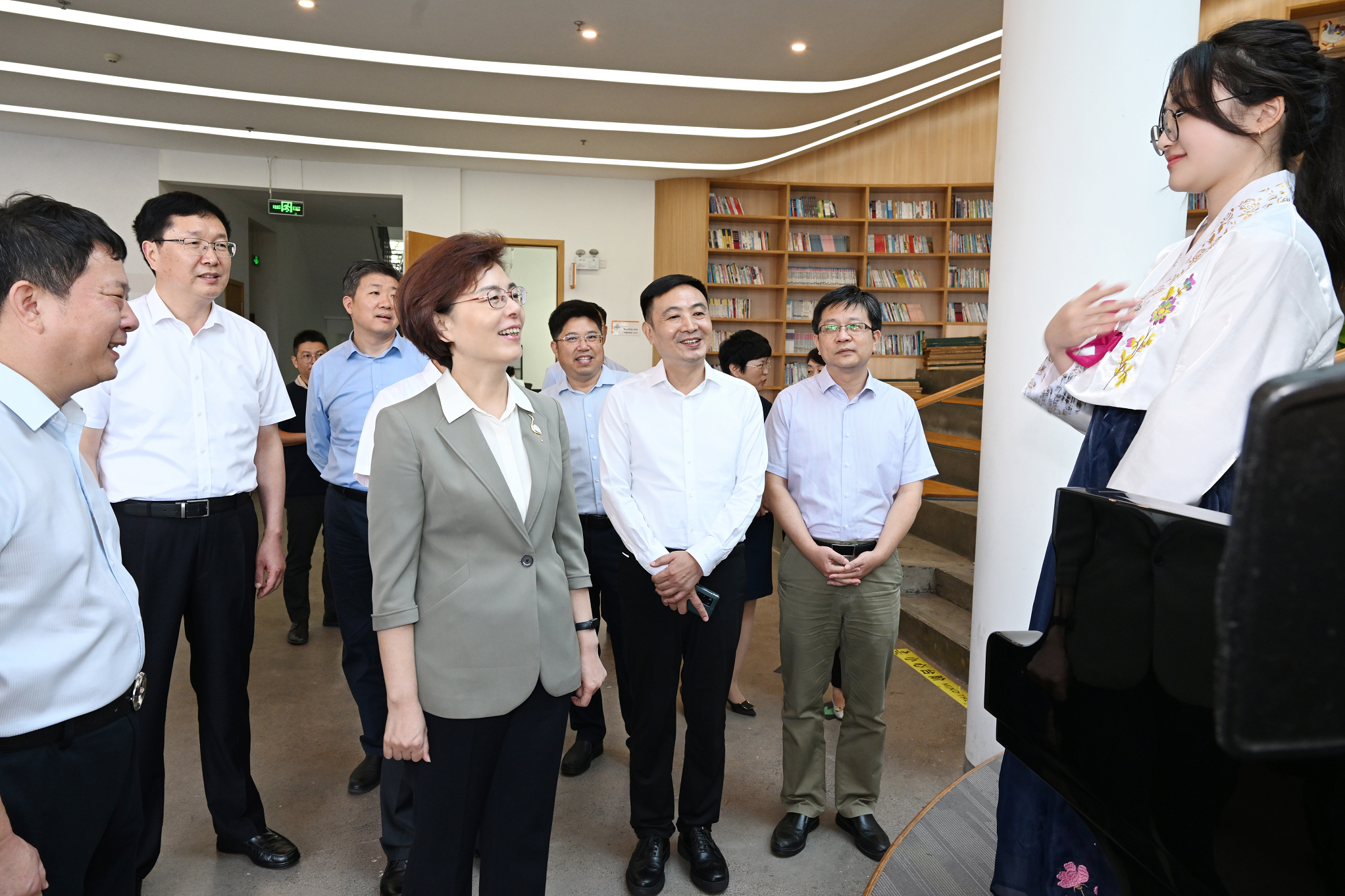 在中韩文化客厅,徐缨先后参观城市书房、展演空间,观看中韩当代书画家作品展等,叮嘱要坚持以人为本,完善功能设施,提升服务水平,促进中外文化交流合作。徐缨现场听取韩风国际文化名城规划建设情况汇报,要求坚持绿色低碳发展理念,顺应群众期盼、彰显盐城特色,以国际标准做好产城融合文章。