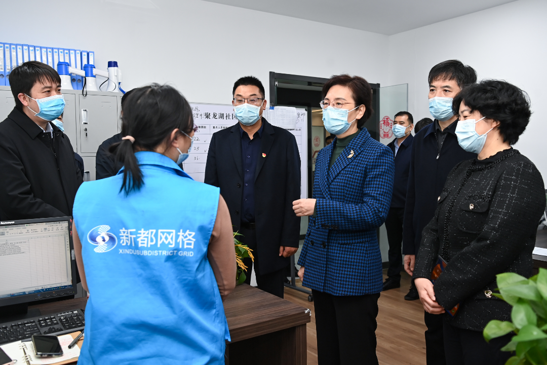 社区是疫情防控的基础单元。在聚龙湖社区,徐缨仔细检查台账资料,详细了解防控人员履职情况,要求注重信息赋能,充分发挥网格员和志愿者作用,深入摸排重点人群和重点区域,做到底数清、情况明。要加强防控政策宣传解读,用心用情用力做好群众服务、争取更多支持,牢牢把握工作主动权。