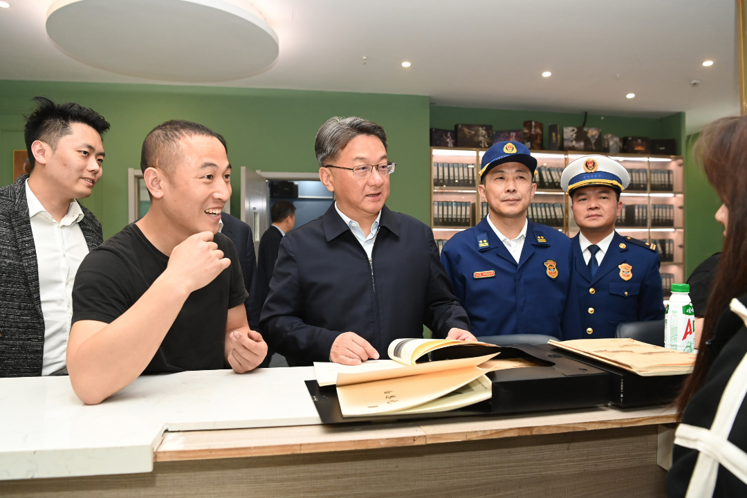 宝龙广场商业综合体人潮涌动、节日氛围浓厚。周斌走进服饰、餐饮、“剧本杀”等经营场所,认真检查安全管理措施落实、消防器材配备、燃气安全等情况,并与企业负责人和商家深入交流,共同探讨更好激发消费活力、满足群众多元化消费需求的有效途径。在消防值班室,周斌仔细察看消防系统运行和值班管理情况。他叮嘱企业负责人要时刻敲响安全警钟,压紧压实主体责任,营造安全放心购物环境。要学习借鉴外地经验,进一步优化消费环境,打造新型业态场景,不断满足群众美好生活需要。