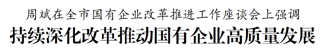 周斌强调,今年是国企改革深化提升行动的决胜之年,要坚持深化改革不停步,坚持问题导向,紧盯薄弱环节,精准发力、持续用力,推动国资国企改革发展取得新进展。明晰功能定位,聚焦高质量发展主题,做好勇挑大梁、服务民生、扩大利润等工作,在增强国企核心竞争力上取得新突破。优化国资布局,做好资源整合,加快新兴产业布局,加强存量资产盘活,在增强国企产业引领力上取得新突破。健全治理体系,提升企业市场化经营、科技创新、现代治理水平,在增强国企发展新活力上取得新突破。坚持底线思维,严防债务风险、内部风险、安全风险,在增强国企抗风险能力上取得新突破。