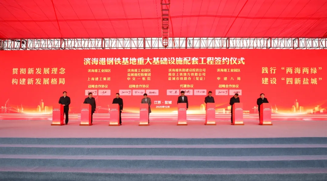 12月2日上午,滨海港钢铁基地重大项目基础设施配套工程开工仪式在滨海港区隆重举行,集团党委书记、董事长、总经理周正雄参加开工仪式并与滨海港工业园区、中交一航院签订战略合作协议。