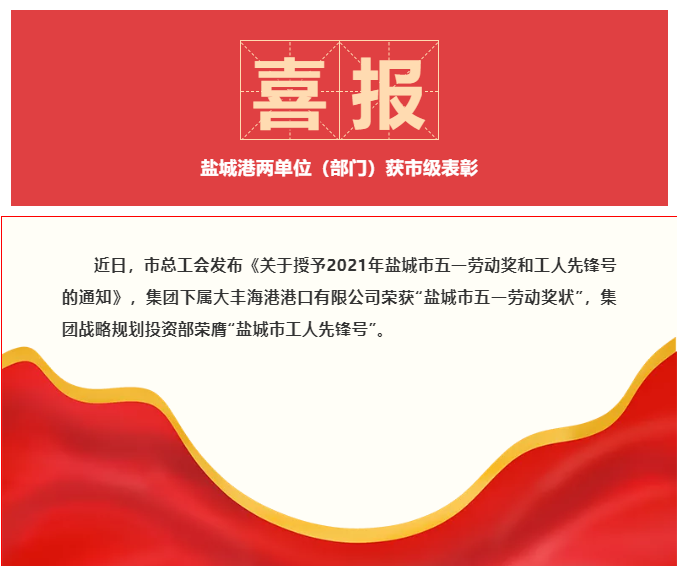 喜报!盐城港两单位(部门)获市级表彰