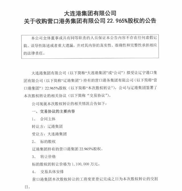 而一直到2019年5月,大连港才陆续拉开了整合大幕。发布了《关于收购营口港集团22.956%股权的公告》。
