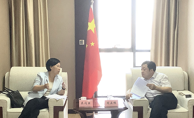 8月17日下午,射阳县委副书记、县长吴冈玉一行莅临盐城港开展项目合作洽谈,集团党委书记、董事长、总经理周正雄主持座谈会议。