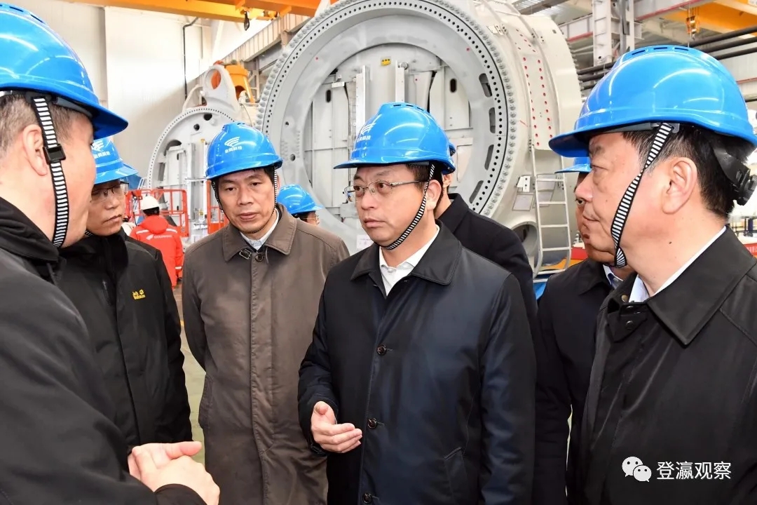 ▲市长曹路宝察看金风科技整机总装厂和16MW传动实验室