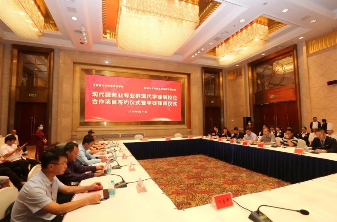 据悉,大丰中等专业学校和大丰港集团旗下半岛温泉酒店签订协议,双方将共同探索建立校企“联合招生、联合培养、定向就业”的人才培养长效机制,为创新人才培养方式提供了一个崭新平台。通过合作,学校和企业进行优势互补,实现资源共享。活动中,学校、酒店、家长、学生四方代表签订了现代学徒制工学交替跟岗实习协议,并举行首批学徒制拜师仪式,23名学生顺利拜师跟岗。