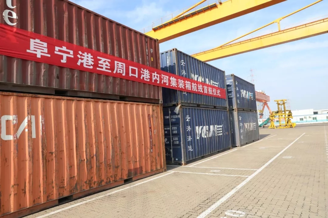 近日,周口港至盐城港阜宁港区内河集装箱航线首航仪式在阜宁港成功举行。随着满载30个集装箱玉米的货船稳稳的靠泊阜宁港码头,标志着周口中心港至盐城港阜宁港区集装箱班轮圆满完成首航,盐城港阜宁港区逐步融入内河航运网络。该航班的开通,将周口至阜宁货物运输时间缩短至7天。