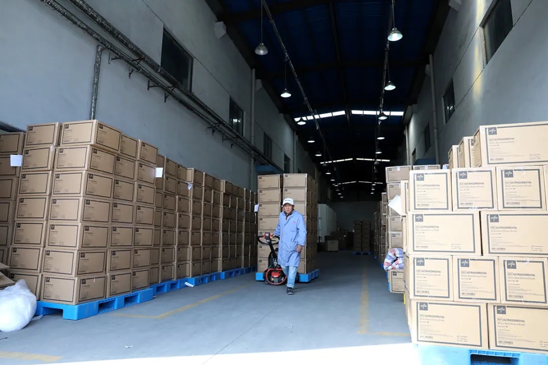 3月26日上午,江苏柯莱斯克公司的医疗耗材正有序装载至45尺集装箱。截至目前,该公司通过盐城港大丰港区“沪盐专线”出口至美国的医疗耗材三批次,累计73万件。