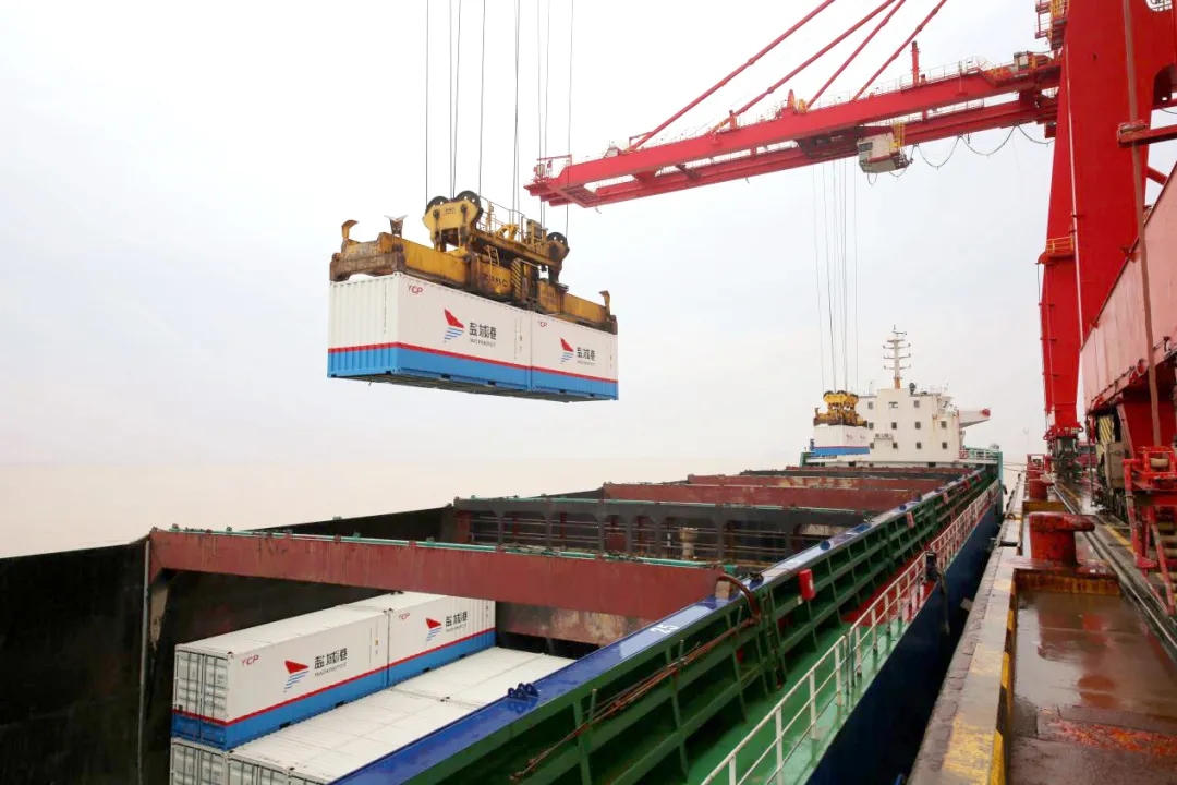 5月28日,118只装有盐城港腹地货物的集装箱通过“沪盐专线”运往上海港,这批集装箱均印有“盐城港”标识,标志着盐城港自备箱参与集装箱物流运输新模式正式开启,为盐城港自主经营集装箱运输业务打下坚实基础。
