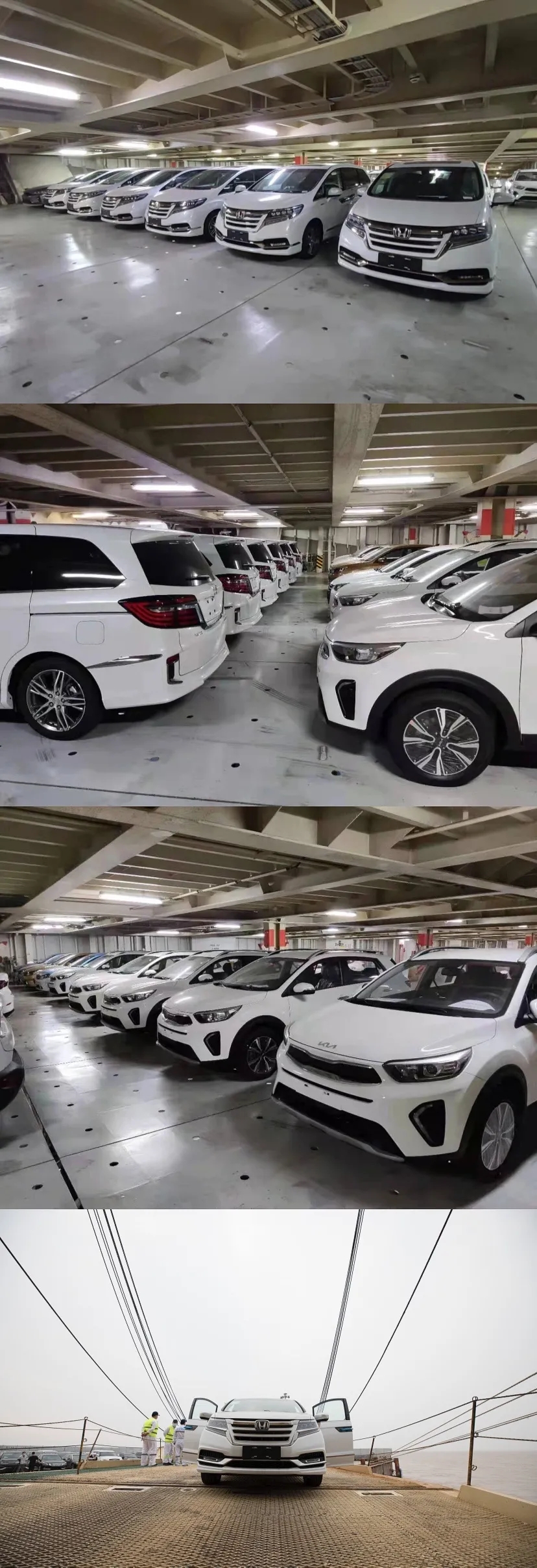 据介绍,执行此次首航任务的汽车滚装船最大可装载汽车2386辆。该航次从大连港满载宝马、奥迪、一汽大众等新车至宁波、上海靠泊卸船,再由上海港装载418辆回程车辆,经停盐城港大丰港区装载来自盐城起亚公司,及山东、安徽等地的286辆全新起亚、东风本田、江铃等品牌车辆至大连港,单次运输汽车数量再创大丰港区滚装码头业务历史新高。在现场工作人员的引导下,装船车辆一辆接一辆地驶进船舱,整个装船过程井然有序,只用了2个多小时,便完成了全部汽车的装船程序。