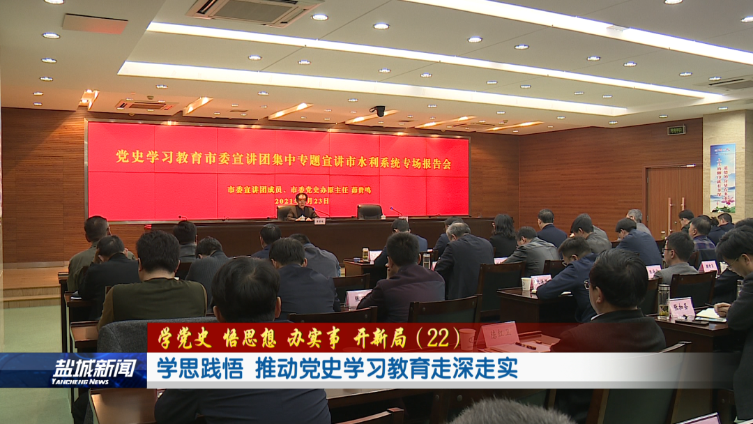 4月23日下午,市委宣讲团成员、市委党史办原主任茆贵鸣,到市水利系统开展宣讲。茆贵鸣以“学党史:明理增信、崇德力行”为主题,系统阐述了“为什么学习党史”、“怎么样学习党史”这两个重大问题。宣讲主题鲜明、视野开阔,史料丰富、逻辑严谨。与会干群一致表示,要扎实学好百年党史、传承红色基因,践行为民初心,努力把学习教育成果转化为工作动力和成效,切实做到知行合一、学用贯通,推动全市水利事业高质量发展。