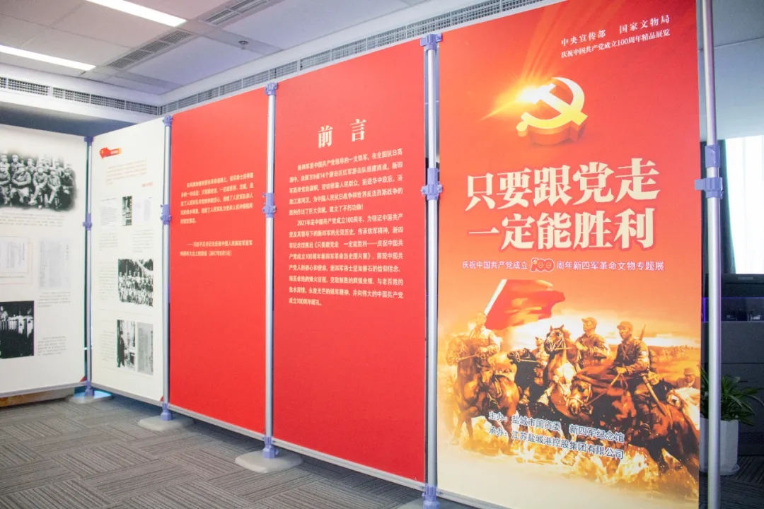 本次展出的《只要跟党走 一定能胜利——庆祝中国共产党成立100周年新四军革命文物专题展》,展现中国共产党人的初心和使命,中国共产党领导的新四军的艰苦卓绝的烽火征程、克敌制胜的辉煌业绩、与老百姓的鱼水深情,永放光芒的新四军优良传统,致敬伟大的中国共产党成立100周年。