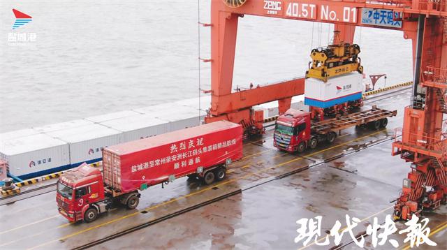 现代快报讯(通讯员 蔡宏立 记者 王菲)4 月 23 日,随着一声汽笛拉响,盐城港"大港集 002 "号满载着 36TEU 集装箱缓缓靠泊常州录安洲长江码头,标志着盐城港至常州集装箱航线正式开通。现代快报记者了解到,这是盐城港持续完善内贸运输物流网络,服务国内"大循环"的又一重要举措。至此,盐城港航线总数增至 37 条,"海上联结南北、内陆贯通东西、向海融入中日韩"双循环新格局加速构建。