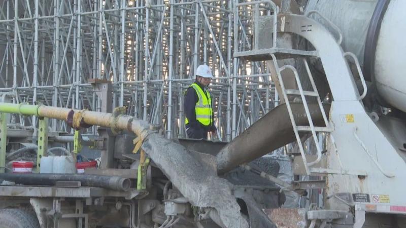 据了解,本次采用支架现浇法进行施工,混凝土方量868.88立方,整体采用盘扣支架体系一次浇筑。由于内部钢筋较多,施工环境狭小,增加了工作难度。为保证连续梁的整体质量,该工程准备工作繁复,需多次对其进行测量避免浇筑施工时影响整体稳定性。